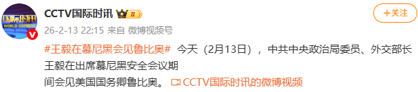 據(jù)CCTV國際時(shí)訊微博消息,今天(2月13日),中共中央政治局委員、外交部長王毅在出席慕尼黑安全會(huì)議期間會(huì)見美國國務(wù)卿魯比奧。編輯 李憶林子 來源:CCTV國際時(shí)訊微博 8 +1 微博 微信 我要評(píng)論 登錄 相關(guān)推薦 美國務(wù)卿魯比奧和特使威特科夫?qū)⒓用罏鯐?huì)談 第一看點(diǎn) 新聞8點(diǎn)見丨王毅同美國國務(wù)卿魯比奧通電話;證監(jiān)會(huì)將實(shí)施深化創(chuàng)業(yè)板改革 新聞8點(diǎn)見 6633 王毅同美國國務(wù)卿魯比奧通電話 第一看點(diǎn) 6918 美國國務(wù)卿魯比奧訪以 尋求組建加沙“國際安全部隊(duì)” 第一看點(diǎn) 以軍空襲卡塔爾后 美國國務(wù)卿魯比奧到訪以色列 第一看點(diǎn) 直播 預(yù)告 大年初二逛廟會(huì)!沉浸式感受市井煙火與長城年味 2026-02-18 09:30 熱點(diǎn) 1 新春走基層|吃39元自助、逛騎行館,王慶坨服務(wù)區(qū)變“潮”了 11.0萬 2 視頻|對(duì)話救人英雄欒留偉的妻子:北京人局氣,我收到了很多祝福 4.2萬 3 日本稱扣押一中國漁船及其船長 外交部回應(yīng) 4.0萬 4 Seedance2.0全球“出圈”:AI生成視頻,中美“攻守易形” 4.0萬 5 中央批準(zhǔn):蔚盛斌任安徽省委常委 3.4萬 最新 機(jī)器人進(jìn)場、巨幕就位!海淀新春科技廟會(huì)先睹為快 31分鐘前 國際|特朗普稱以總統(tǒng)應(yīng)為不赦免以總理“感到羞愧” 以總統(tǒng)回應(yīng) 46分鐘前 居民陽臺(tái)火情初露苗頭,微型站消防員巡邏時(shí)發(fā)現(xiàn)及時(shí)撲救 1小時(shí)前 北京警方開展安全隱患集中整治 1小時(shí)前 東城警方節(jié)前全面排查護(hù)平安,引導(dǎo)商戶和群眾增強(qiáng)安全意識(shí) 1小時(shí)前 熱議 總書記考察回訪|智源林詠華:人才挑大梁,打造一支AI“北京隊(duì)” 2026新春走基層 | 北京西站給水員的春運(yùn)“半馬” 2026新春走基層|3.5萬步的堅(jiān)守:高鐵上水工的隱形守護(hù) 中國科學(xué)院“打假”,讓“蹭名頭”現(xiàn)原形 | 新京報(bào)快評(píng) 總書記視察的這條胡同里,藏著哪些北京社區(qū)養(yǎng)老密碼|新京報(bào)專欄