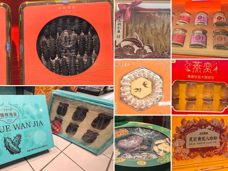 2月初,新京報記者走訪北京多家商超、滋補品店看到,今年滋補年貨花樣繁多,既有燕盞、赤靈芝、麥盧卡蜂蜜等單品大禮盒,也有猴頭菇、蛹蟲草、銀耳、紅棗等組成的拼盤禮盒,凍干海參、凍干鮑魚、干花膠、魚翅等組成的干貨禮盒。而比起這些年貨“老常客”,燕窩粥、阿膠原粉、精燉海參等“新面孔”比例同比增大。