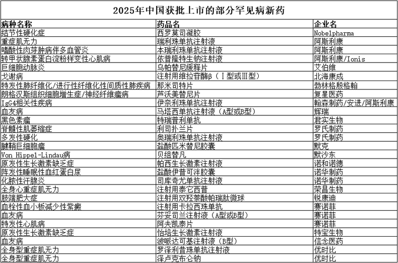 截至目前,跨國(guó)藥企主導(dǎo)罕見(jiàn)病藥物市場(chǎng)的現(xiàn)狀并未改變,但中國(guó)罕見(jiàn)病力量正在崛起,巨大的未被滿足的臨床需求、利好的監(jiān)管政策、逐漸完善的多方支付體系,也讓中國(guó)藥企看到了罕見(jiàn)病產(chǎn)業(yè)的廣闊前景。前述《觀察報(bào)告》顯示,2025年中國(guó)獲批上市的48款罕見(jiàn)病領(lǐng)域藥物(含仿制藥)中,超17款來(lái)自中國(guó)藥企。