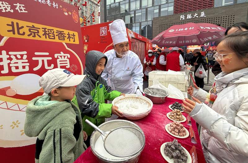 “元宵開搖啦!”為迎接傳統(tǒng)元宵佳節(jié),北京稻香村在隆福寺新春市集開設現(xiàn)搖元宵點位。透明的隔間里,師傅們正熱火朝天地忙碌著,四四方方的傳統(tǒng)餡料在翻滾中被一層層糯米粉包裹,逐漸形成一顆顆圓滾滾、毛茸茸的雪白元宵,現(xiàn)搖現(xiàn)售煙火氣十足。此外,北京稻香村的師傅們還會在現(xiàn)場展示傳統(tǒng)手搖元宵制作技藝,讓市民既能感受節(jié)日食俗文化,也能沉浸式體驗傳統(tǒng)佳節(jié)的濃厚氛圍。