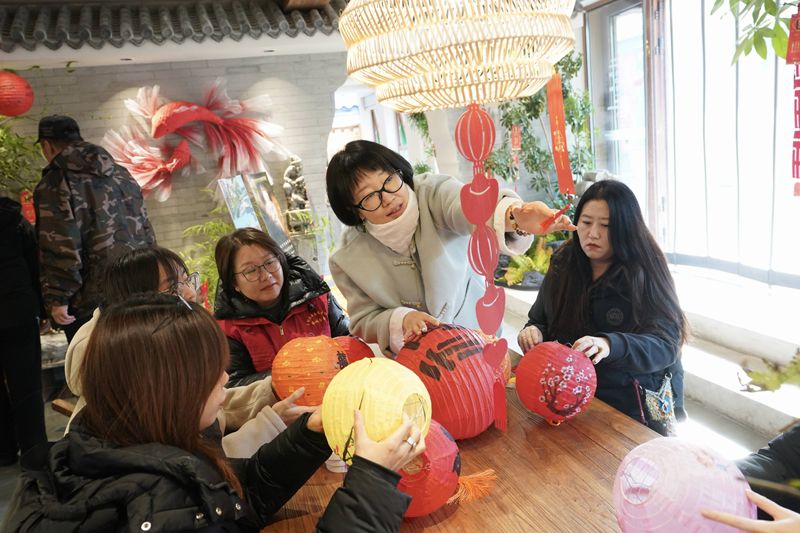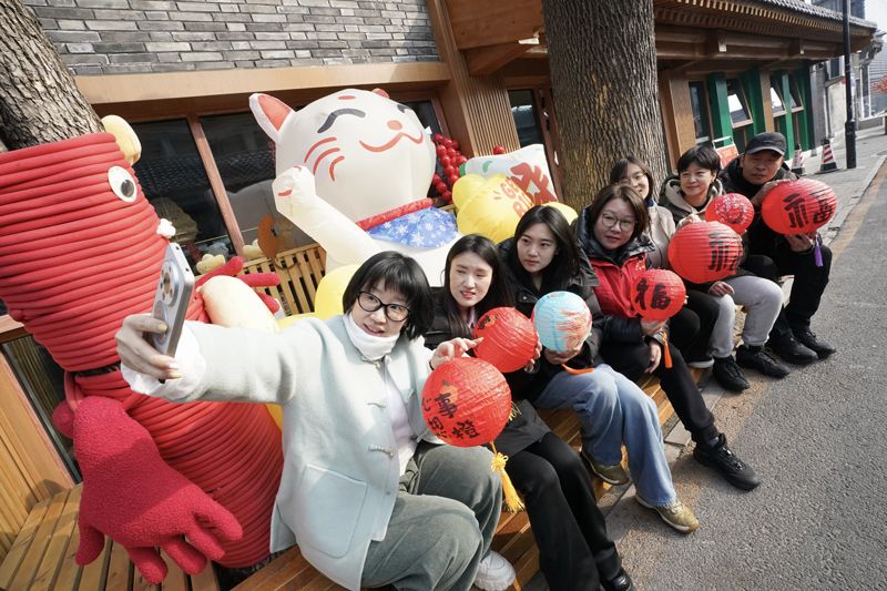 3月3日,正月十五,“700年磚塔元夕·燈暖胡同煥新紀(jì)”首屆元宵節(jié)燈謎大會(huì)暨胡同文化節(jié),在被譽(yù)為“北京胡同之根”的磚塔胡同舉行。圖為市民舉著燈籠留影。