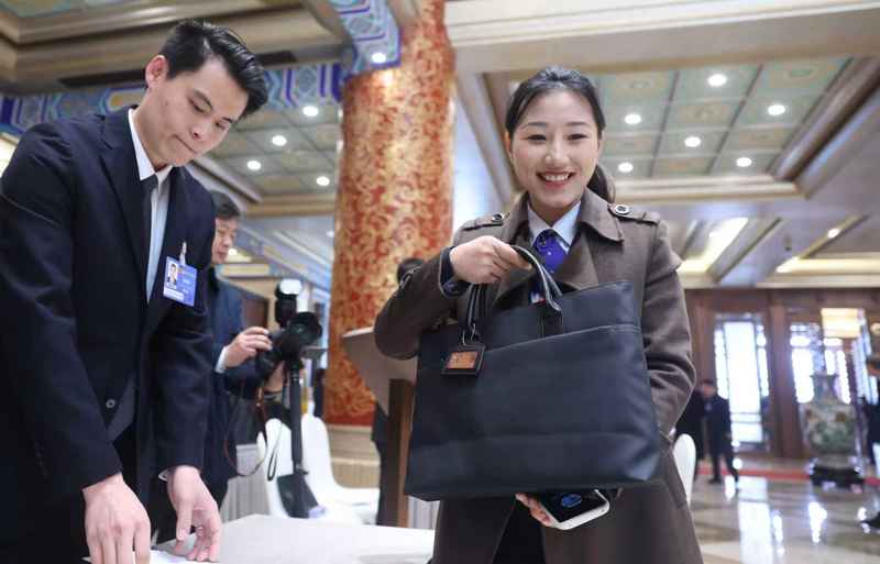 3月3日,北京會(huì)議中心,全國人大代表何少花完成報(bào)到。新京報(bào)記者 李木易 攝