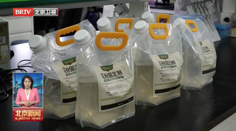 北京農(nóng)學(xué)院植物科學(xué)技術(shù)學(xué)院教授邢宇說:“這一袋固定劑可以兌到容量一噸的噴水車?yán)?,如果噴水,一天要噴三到五回,但如果噴我們的產(chǎn)品,一天只用噴一次,即可以使花粉有效沉降對比噴水達(dá)到20倍以上?!?/p>