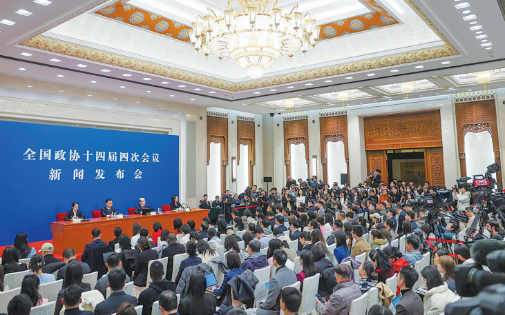 ▲3月3日15時,全國政協(xié)十四屆四次會議新聞發(fā)布會在北京人民大會堂舉行。新京報記者 李木易 攝