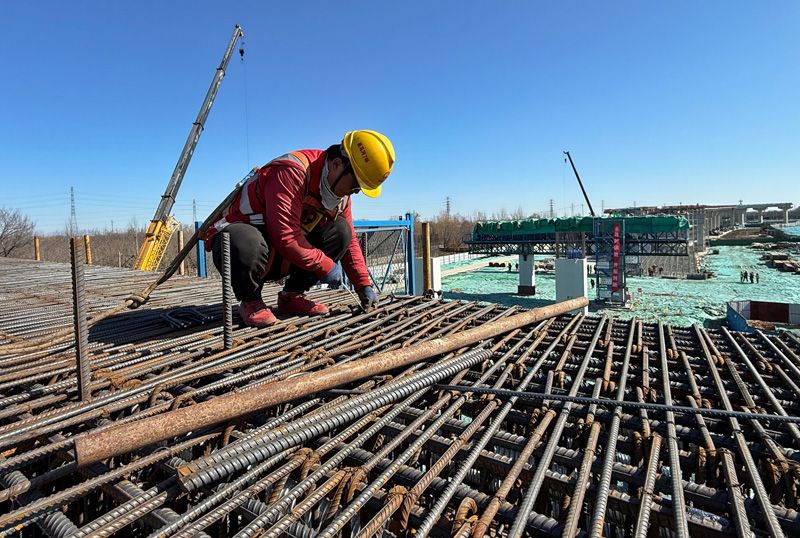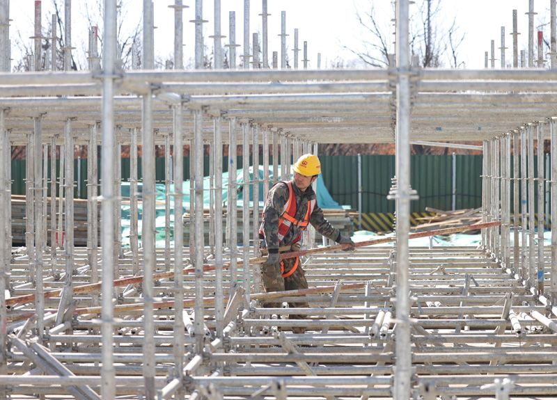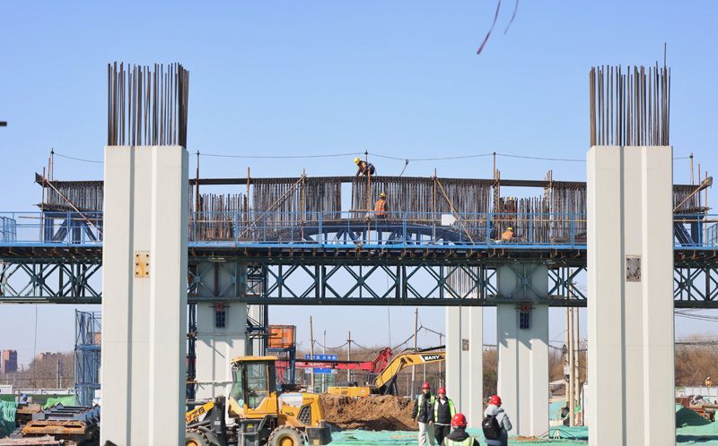 3月9日,亮馬河北路工地,工人在高架橋上捆綁鋼筋。隨著務(wù)工人員陸續(xù)返崗,北京重點(diǎn)工程正全面復(fù)工復(fù)產(chǎn)。記者從首發(fā)集團(tuán)公聯(lián)公司了解到,北京市重點(diǎn)工程亮馬河北路在春節(jié)期間堅守施工、不停工不停產(chǎn),目前已進(jìn)入全面鋪開、整體推進(jìn)的施工階段。