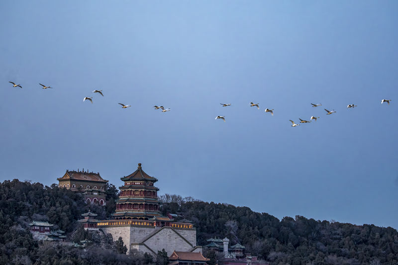 候鳥北歸,飛臨頤和園。頤和園供圖