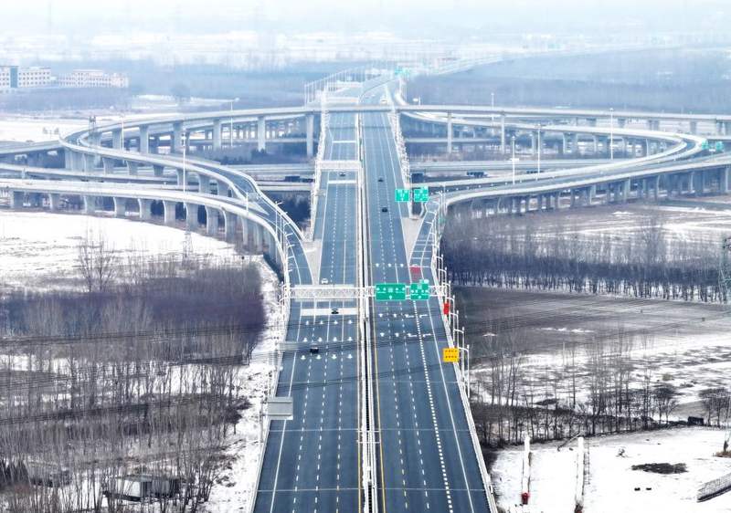 這是2026年1月18日拍攝的京雄高速泗莊樞紐互通(無人機(jī)照片)。新華社記者 朱旭東 攝