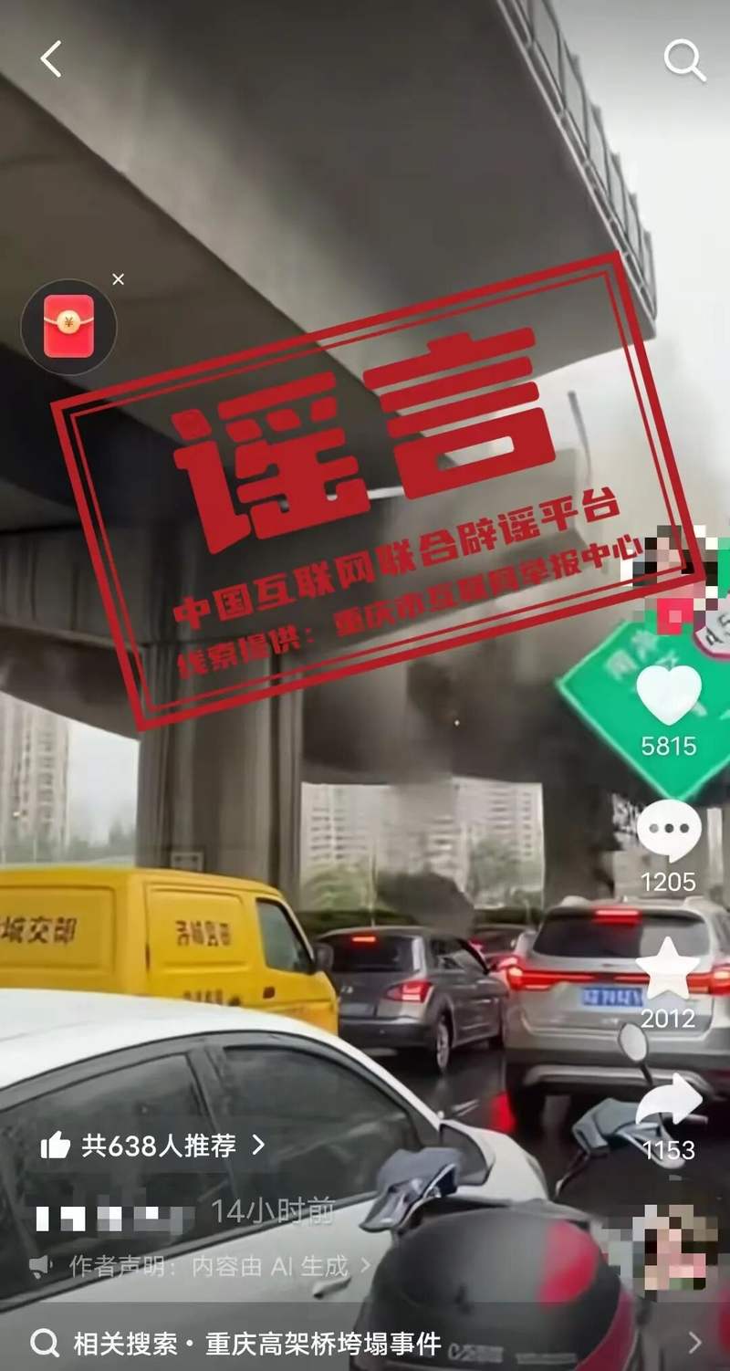 辟 謠 重慶“南岸立交”發(fā)生坍塌系A(chǔ)I生成