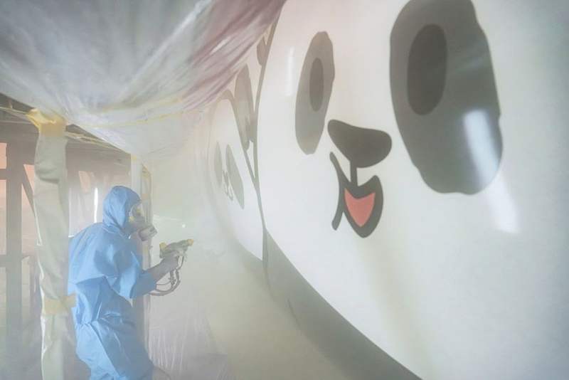 噴涂工程師檢查熊貓彩繪漆面。