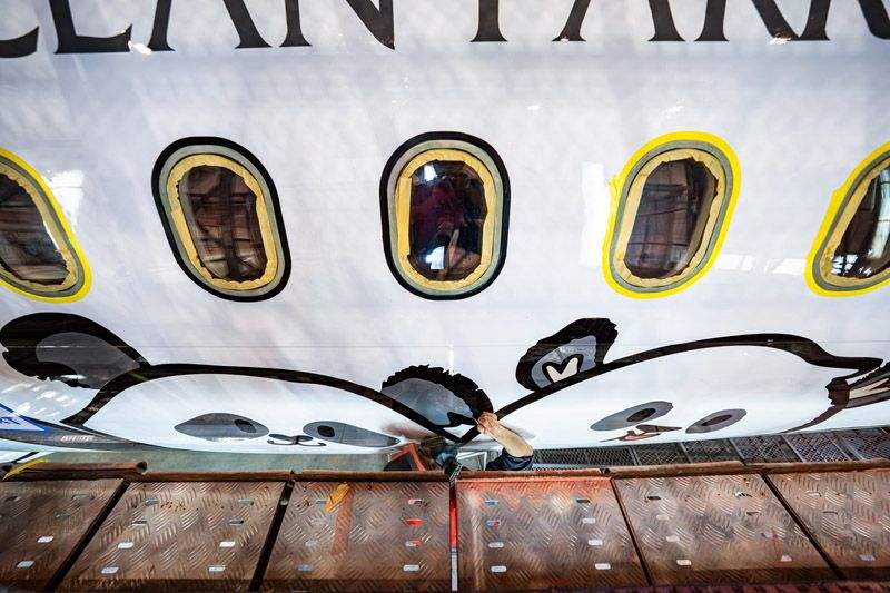 經(jīng)過多日的精雕細(xì)琢,整個“熊貓大家庭”終于完整呈現(xiàn)在機(jī)身兩側(cè)。多只憨態(tài)可掬的大熊貓仿佛在云端嬉戲,將香港本土保育成果與市民共同的情感記憶帶上藍(lán)天。