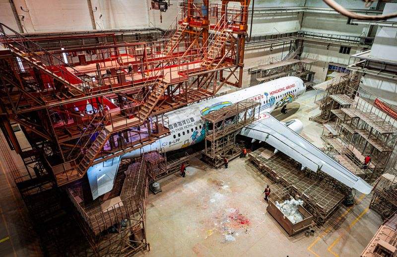 據(jù)現(xiàn)場工程師介紹,此次彩繪涂裝采用多種噴涂相結(jié)合的方式,僅熊貓眼睛的勾勒就需要反復(fù)調(diào)整多次,以確保神韻生動。“每一道線條、每一塊顏色,都要讓熊貓‘活’起來,讓飛機(jī)帶著香港的溫度飛向世界。”他說道。