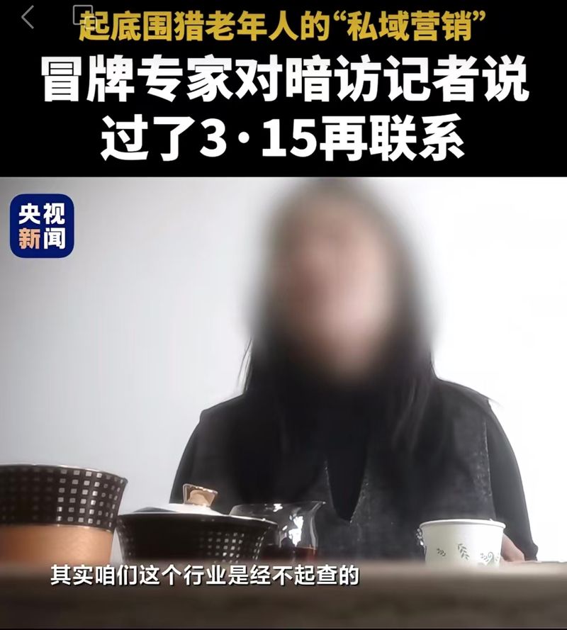 “最好過了‘3·15’吧,現(xiàn)在確實(shí)不敢弄?!彼接驙I銷鏈條中冒牌專家的一句真心話,撕開了私域營銷圍獵老年人的遮羞布。