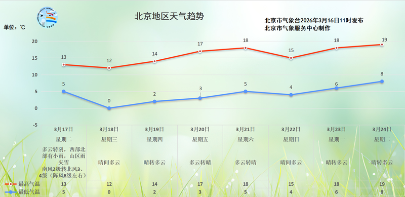 今晚北京西部北部有小雨,雨后北風(fēng)加大、氣溫下降