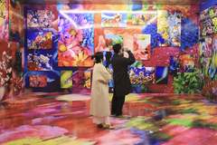 拍攝者在指導游客擺動作。