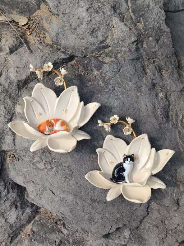 “3月14日至25日是萬壽寺的玉蘭季,結(jié)合玉蘭季,我們開發(fā)了15款文創(chuàng)產(chǎn)品,包括明信片、冰箱貼、小香囊、擺件等?!北本┧囆g(shù)博物館文創(chuàng)展覽部主任徐衍偉說著,舉起一件館內(nèi)“頂流”——玉見福貓系列冰箱貼。館寵貓咪蜷臥在溫柔雅致的玉蘭花里,還融入了館內(nèi)獨有的福壽文化氣息。遠(yuǎn)看有陶瓷的質(zhì)感,實際上是金屬立體浮雕工藝。里面的小貓還可以單獨拆開,可玩性很足。