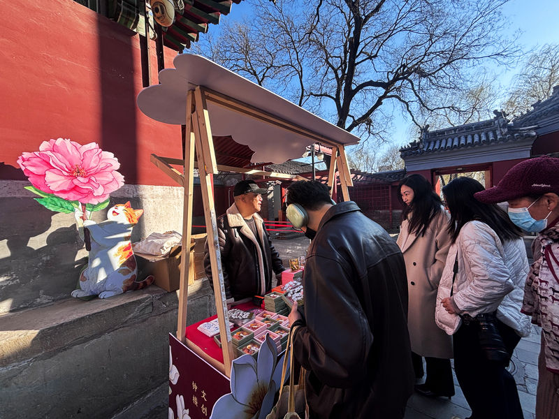 游客在萬壽寺挑選心儀的文創(chuàng)產(chǎn)品。新京報記者 展圣潔 攝
