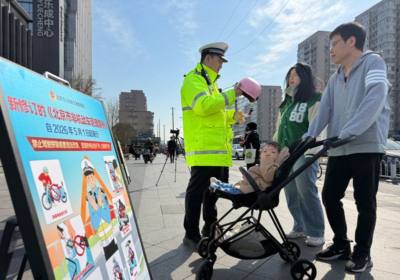 3月19日,東三環(huán)雙井橋路口,朝陽交通支隊(duì)民警對非機(jī)動(dòng)車交通違法行為進(jìn)行糾正,同時(shí)對一些未佩戴安全頭盔的電動(dòng)自行車騎行者進(jìn)行安全提醒。北京交管部門將在2026年開展針對性整治,通過執(zhí)法勸導(dǎo)、加強(qiáng)宣傳等組合措施,提升市民交通安全意識,督促電動(dòng)自行車騎乘人佩戴安全頭盔,減少電動(dòng)自行車交通安全隱患。