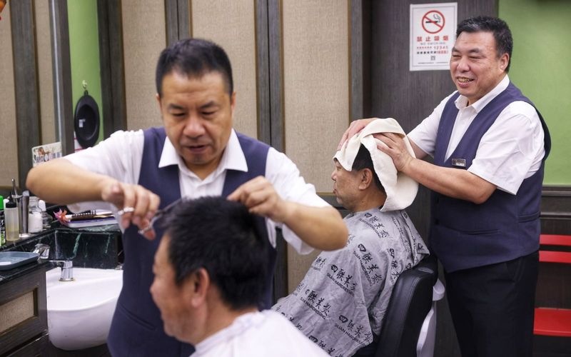 一位老師傅正為顧客修整鬢角,手法沉穩(wěn)利落?!懊磕辍露?,到這里來理個(gè)發(fā),不只是換個(gè)發(fā)型,更像是赴一場(chǎng)老北京的儀式?!碧匾廒s早來的常客李女士說。