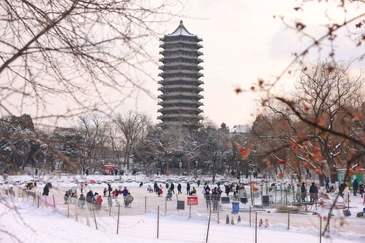 1 今年初雪染燕園 北大銀裝迎游客7.7萬(wàn)