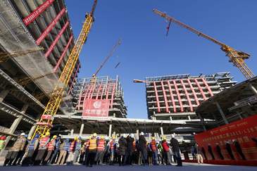 首都醫(yī)科大學(xué)新校區(qū)(校本部)首棟鋼結(jié)構(gòu)封頂